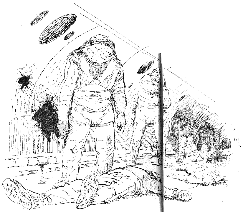 Während des Angriffs einer Maahkflotte auf das Big Blue-System kann sich die robotgesteuerte Kaulquappe R-10 mit Tako Kakuta, den Woolver-Zwillingen und der als Trümmerstück getarnten HELLTIGER an Bord Vario nähern. Zusammen mit sieben Maahk-Raumern wird das Robotschiff vom Zeittransmitter des Planeten erfaßt, in die Vergangenheit versetzt und anschließend nach Kahalo abgestrahlt. Die lemurischen Wachflotte vernichtet die sieben Schiffe der Maahks. Ehe die R-10 explodiert, können sich Kakuta und die Woolvers nach Kahalo absetzen, um nach Frasbur zu fahnden. Lemy Danger rettet sich mit der HELLTIGER auf den vierten Planeten eines nur zehn Lichtjahre entfernten Sonnensystems. Dort trifft er auf Gucky, den Perry Rhodan zusammen mit Major Nils Anderson nach Kahalo entsandt hat und der unterwegs auf die von den Lemurern evakuierte Kolonialwelt gestoßen ist. Gemeinsam können der Mausbiber, der Siganese und der Terraner einer Gruppe von Lemurern entkommen, die Guckys und Andersons Moskito-Jet entdeckt haben, und die bei Redpoint wartende CREST III erreichen.