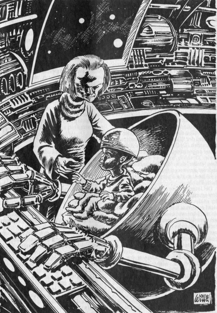 Laymonen erweist sich als das körperlose Bewußtsein eines Querionen, dem es der Defekt des Materieprojektors, durch den er stofflich werden wollte, unmöglich gemacht hat, beim Angriff Ijarkors auf die Station mit seinen Gefährten durch die Absolute Bewegung über das psionische Netz zu fliehen. Der durch den Projektor an die Station gebundene Querione bemächtigt sich Longascs Körper. Als erfährt, daß die Vironauten Kytoma kennen, die ebenfalls dem Volk der Querionen angehört, erklärt Laymonen, daß die Erbauer der Gorim-Stationen, zu denen viele Querionen zählten, gegen die Ewigen Krieger kämpften, weil diese mit den Wundern ESTARTUs das universelle psionische Netz durch künstliche Kalmenzonen unterbrächen und damit das Kosmonukleotid DORIFER und den Moralischen Kode gefährdeten. Tekener lehnt Laymonens Bitte, ihn durch Zerstörung des Materieprojektors zu erlösen, ab, doch der Distelfrosch Plump desaktiviert das Gerät durch einen Sprung.