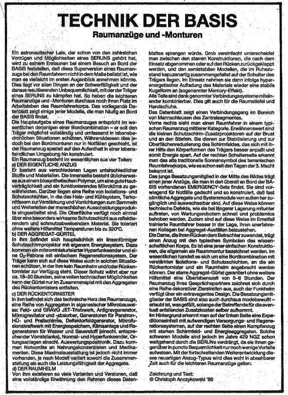 Raumanzüge und -Monturen - Technik der BASIS Terranische Technik |