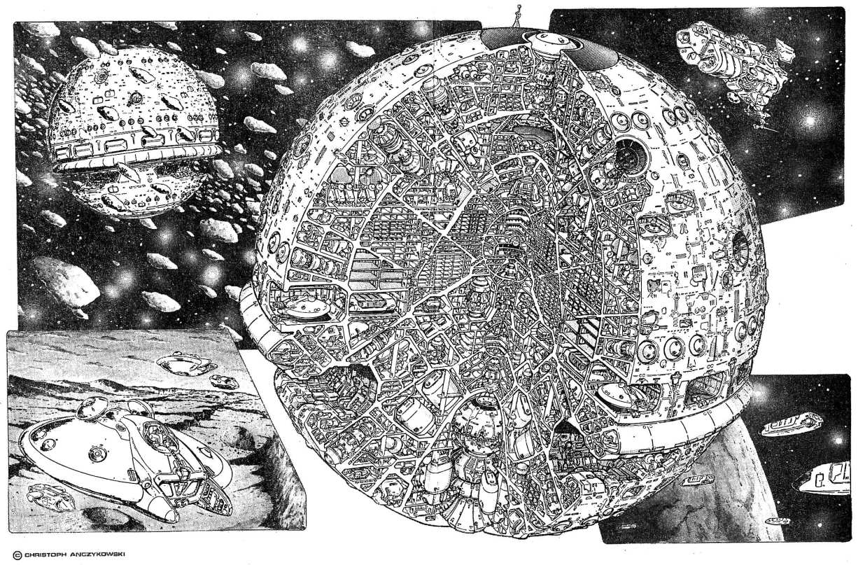 21.Ringförmiger Wohnbereich mit Kabinen und Messen etc.
