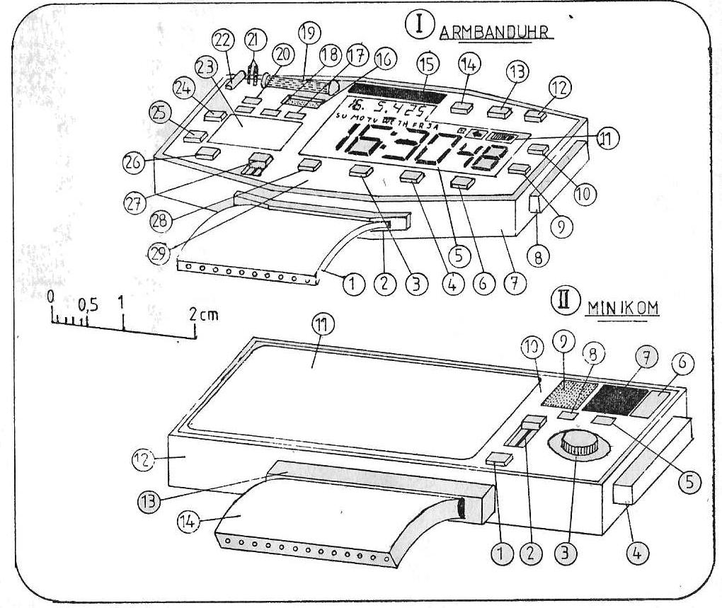 Armbanduhr und Minikom