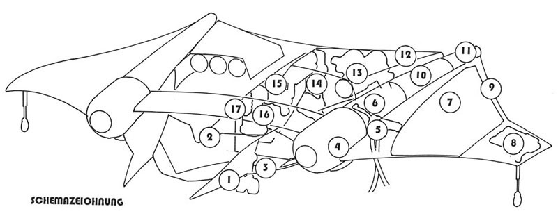 Technische Spezifikationen: Abmessungen Spannweite 18 Meter Länge 14 Meter Höhe Zelle: 3,5 Meter, 4,5 Meter gelandet Massen max. Abflugmasse 37,8 metrische Tonnen davon Treibstoff 14,8 metrische Tonnen Crew Standard 3 (Pilot, Ortungs-/Kommunikations- und Varsonik-Operator und Bordschütze) Passagierkapazität 1 Person je nach Einsatzart Taktische Systeme Offensive 2 Reaktionskanonen als Hauptbewaffnung; 1 Desintegrator und 1 Paralysator als Sekundärbewaffnung defensive Klasse-l Schutzschirm Ortungsstörsysteme Antriebssysteme Hauptantriebssystem 6 Fusions- Impulstriebwerke mit je 2 Felddüsen agekontrollsystem 6 Kaltgas-Düsensätze Antigrav / Trägheitsdämpfung Energieversorgung Fusionsreaktoren (2) der Impulstriebwerke, Strombanken als Puffer für Bordsysteme Reichweiten ordtank durchschnittlich 40 Flugstunden Legende