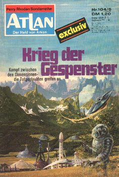 rematerialisieren und führen sinnlos ihren Krieg weiter. Als der Mann verschwindet, wird Atlan mitgerissen.Fartuloon entwickelt einen Plan, die "Geister" mit Hilfe einer hyperenergetischen Explosion in das normale Universum zurückzuholen. Bevor er den Plan durchführt, kann Atlan noch ein Zwei-Mann-Boot der Geheimpolizei, das sich im Anflug auf Kraumon befindet, sabotieren und in die Sonne lenken. Fartuloons Plan gelingt, jedoch führen Maahks und Arkoniden ihren Kampf weiter. Lediglich der Veteran Morvoner Sprangk, mit dem sich Atlan angefreundet hat, kommt zur Vernunft. Die übrigen Überlebenden werden von Fartuloons Kampfrobotern getötet, als sie das Diskusschiff trotz vorheriger Warnung stehlen wollen. Handlungszeit: 4. Tedar bis 12. Tedar 10.497 da Ark Anmerkung: © Schrotys Materiequelle Die Seite wurde erstellt von Bernd Labusch © Romanzusammenfassung von Torben Kneesch |