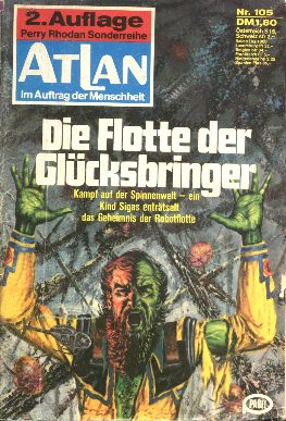 Die Flotte der Glücksbringer Kampf auf der Spinnenwelt - ein Kind Sigas enträtselt das Geheimnis der Robotflotte Örtlichkeiten: Zeitraum: Hardcover: 2842 n. Chr.