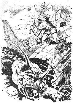 Die Reparaturarbeiten am Propellerflugzeug ziehen sich in die Länge, da die beiden Somorer sich als keine große Hilfe erweisen und zudem ein großer Büffel das Fahrzeug als Rivale betrachtet und es zu zertrümmern versucht. Dem Kristallprinzen gelingt es dennoch, das Flugzeug notdürftig zu reparieren. Als er gerade mit der Arbeit fertig ist, erscheint eine kleine Flotte der Sklavenjäger aus dem Volk der Zradus auf dem Fluß und wird auf die Überreste des Ballons aufmerksam. Sie folgen der Spur Atlans und entdecken kurze Zeit später das Propellerflugzeug. Dem Kristallprinz und den Somorern gelingt es im letzten Moment zu starten, bevor die Sklavenjäger ihnen den Weg abschneiden können. Beim überstürzten Start werden sie jedoch von den Zradus mit einem Pfeilhagel eingedeckt und eines der Geschosse trifft Zickjal am Bein. Die Pfeilspitze ist vergiftet und der Pilot stirbt nur kurze Zeit nach dem Start. Atlan versucht vergeblich das Propellerflugzeug unter seine Kontrolle zu bekommen, das in einen Sumpf stürzt. Mit letzter Kraft gelingt es dem Arkoniden mit Beikla und einem Teil seines Gepäcks festes Land zu erreichen. Anschließend kommt es zum Streit über den weiteren Weg der kleinen Expedition. Beikla möchte die Glasssteppe direkt durchqueren, während Atlan sie westlich umgehen will. Im Westen befindet sich Teghment, der Stützpunkt der geheimnisvollen Tejonther, die als einzige auf Somor die Raumfahrt beherrschen. Atlan hofft, dort auf Grek-3 und Crysalgira zu treffen. Beikla erzählt Atlan jedoch auch vom Wahnsinnigen Motros und anderen Gefahren und weigert sich dort hinzugehen. In der Glassteppe trifft man auf die Glasdämonen und andere vom Kannibalismus lebende Barbaren. Und schließlich macht sich Beikla aus dem Staub. Atlan folgt ihm bis in das Mündungsdelta des Jongquatz-Dreiflusses, wo der mit den Somorern verbündete Stamm des alten Unao lebt. Es handelt sich um zwergenhafte Wesen, die entfernt an Varganen erinnern und dem Fremden ein sehr herzliches Willkommen bieten. Vor allem die Tochter des Ältesten Saia schwärmt für den Kristallprinzen. Am Abend wird vom Dorf ein großes Fest ausgerichtet, in dessen Rahmen Atlan mehr über den aktuellen Aufenthaltsort von Crysalgira zu erfahren hofft. Allerdings ist sein Wein vergiftet. Der Arkonide leidet unter schweren Halluzinationen und ist vollkommen handlungsunfähig. Die Leute Unaos wollen Atlan als Sklaven an die Somorer verkaufen, doch Saia hat Mitleid mit dem Fremden und setzt Atlan in einem Boot aus. Als der Kristallprinz wieder zu sich kommt, befindet er sich in der Obhut des Tejonthers Vruumys, der im Blauen Meer nach Tonkrügen sucht, in denen sich ein Elexier befinden soll, das Unsterblichkeit verleiht. Der Tejonther verspricht, den Arkoniden nach Teghment zu bringen, sobald er einen Tonkrug gefunden und vom Elexier gekostet hat. Atlan unterstützt ihn daraufhin bei seinen Tauchgängen und entdeckt später tatsächlich einen der gesuchten Tonkrüge. Allerdings leben in dem Riff auch zahlreiche Tiefseeungeheuer, die die Abenteurer für fette Beute halten. Dennoch gelingt es einen der Behälter an Land zu bringen. Während Atlan skeptisch ist, kann Vruumys es nicht erwarten, vom Elexier im Behälter zu kosten. Ohne es vorher auf seine tatsächliche Verträglichkeit mit dem Stoffwechsel von Tejonthern zu prüfen, probiert er einen ganzen Becher von der Flüssigkeit und stirbt nur wenige Augenblicke später an einer Vergiftung. Atlan, der seinen Anteil am Elixier einfach wegkippte, ist wieder allein und macht sich auf den Weg zu Vruumys Raumschiff. Handlungszeit: 32. Coroma bis 9. Tartor 10.498 da Ark © Schrotys Materiequelle © Seite von Bernd Labusch |
