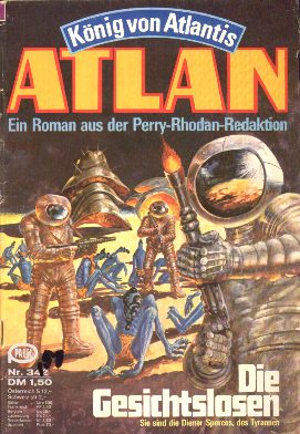 ![]() ![]() Gerade als sich in einer fremden Dimension der Ritter Karthau einem rituellem Duell widmen will, kommt es zu einer hyperenergetischen Wechselwirkung und der Bera Kolpyhr wird durch eine Dimensionsnische geschleudert, dem erstaunten Karthau direkt vor die Füße. Nachdem sie ihre Überraschung überwunden haben, kommt es zu einem Gespräch. Der Ritter läßt durchblicken, aus einer Vision von Atlan erfahren zu haben. Anschließend wird der Bera nach Loors zurückversetzt. Allerdings ist Kolphyr nun ein 100 Meter großer Riese. Ihm folgt der ebenso ins Gigantische verzerrte Karthau. Mit einer Antimaterieexplosion gelingt es dem Hyperphysiker die Verhältnisse scheinbar zu normalisieren. Es stellt sich heraus, daß die Dimensionsverzerrung, die Karthau nach Loors schleuderte, aus einer Wechselwirkung zwischen dem Triebwerk eines landenden Raumschiffs mit der Bezeichnung TREUE und dem Wölbmantel von Pthor entstand. Razamon läßt offenes Mißtrauen gegenüber dem fremden Ritter erkennen. Atlan beschließt zunächst einmal zu beobachten, wer sich in dem Raumschiff befindet und welche Pläne er verfolgt. Fünf in Rüstungen gekleidete Personen verlassen das Schiff, marschieren ohne zu zögern, zum nächsten Camp eines Stamms der Brangel und begehen ohne Vorwarnung ein Massaker. Am Abend speisen Atlans und seine Begleiter an einem Lagerfeuer in einem verstecktem Tal, unweit des Landeplatzes der Invasoren. Als der Ritter und der Arkonide allein sind, beginnt Karthau den Unsterblichen auszufragen, der zögert zu antworten. Schließlich eskaliert die Situation. Es kommt zu einem Handgemenge, der Ritter aus einer fremden Dimension flieht ins offene Gelände und wird von den Fremden aus dem Raumschiff erschossen. Trotz der Übermacht der Invasoren, planen Atlan und seine Freunde am nächsten Morgen den Untergrundkampf. Doch hat sich einer der Fremden aus dem Hinterhalt an das Versteck der Pthorer herangeschlichen und bedroht nun Atlan mit seiner Waffe. Der Fremde stellt unangenehme Fragen und erweist sich als Karthau in einer anderen Erscheinungsform. Als der falsche Ritter für einen kurzen Moment unaufmerksam ist, wird er von Thalia mit ihrer Vars-Kugel niedergeschlagen und getötet. Die Raumrüstung des Invasors löst sich in grellen Flammen auf. Ein Landetrupp der Fremden unter der Führung Soccos wird auf die Spur von Atlan und seinen Gefährten gesetzt, während die Brangel in die TREUE verschleppt und brutalen Verhören unterzogen werden. Die Invasoren können sich das Erscheinen von Pthor nicht erklären. Schließlich wird auch Atlan verschleppt und verhört. Im Schiff stellt sich heraus, daß Karthau am Leben ist, seine beiden verstorbenen Versionen waren Produkte der Hyperphänomene. Socco hält ihn für eine Gefahr und tötet den Spercoiden eigenhändig. Anschließend erfährt Atlan, daß die Spercoiden im Dienst des Tyrannen von Wolcion stehen und daß Loors eine Depot- und Leuchtfeuerwelt der Kriegsflotte Spercos ist. Die seltsamen Phänomene um Karthau erklären sich aus den Nebenwirkungen, des zum Leuchtfeuer gehörenden Hyperstrahlers. Der Hyperstrahler war von Karthau erbaut worden, dadurch besaß dieser eine besondere Affinität zu dem Leuchtfeuer. Atlan verrät Socco, daß er von Pthor stamme, daß jedoch nur er selbst den Wölbmantel durchschreiten könne. Der Diener Spercos glaubt ihm nicht. Er rüstet eine Expedition nach Pthor aus und verlang von Atlan dieser den Weg zu weisen, allerdings gefesselt. Als sie den Schirm durchschreiten, lösen sich die Spercoiden und die Fesseln auf. Atlan ist wieder frei. Handlungszeit: Mitte März 2649 n.Chr. © Schrotys Materiequelle |