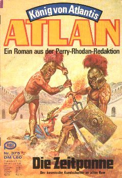 ![]() ![]() Zunächst versucht Algonkin-Yatta, von Loggy unterstützt, die Zeitkapsel zu reparieren, während Dorstellarain als Dorjan Pthoricus Clanocis Gladiator wird. Doch das Treibstoffproblem läßt sich nicht mit Bordmitteln lösen. Als Anlytha und Algonkin-Yatta auf einem Markt in Rom Gold erwerben wollen, werden sie bald der Zauberei beschuldigt und zum Tode im Flavischen Amphitheater verurteilt. Ausgerechnet Dorstellarain soll gegen sie, bei Anwesenheit von Kaiser Marcus Aurelius, in der Arena antreten. Der Clanoc ist ratlos, doch Anlytha erschafft mittels ihrer Parafähigkeiten Hologramme von sich selbst und dem Mathoner, die in einer wilden Spiegelfechterei von Dorstellarain alias Dorjan besiegt werden. Am Abend wird der Clanoc in den Imperatoren Palast eingeladen. Er nimmt in Begleitung von Anlytha, die sich als Mätresse Callina ausgibt, teil. Algonkin-Yatta ist vorerst zur Kapsel zurückgekehrt, um weitere Reparaturen vorzunehmen, die bislang von Dorstellarain als Gladiator erworbenen Menge Gold reicht jedoch noch nicht aus, um die Kapsel voll einsatzfähig zu machen. Während Callina alias Anlytha versuch die Gunst des Mark Aurel zu gewinnen, erweckt der Clanoc das Interesse Faustinas, der Gattin des Imperators. Bald kommt es zur Ernennung von Dorstellarain zum Verwalter des kaiserlichen Palastes. Doch bleibt dem Flußpiraten keine Zeit sich an ein Leben als Beamter zu gewöhnen. Das Parthische Reich in Persien erklärt Rom den Krieg und Dorstellarain zieht als Feldherr an der Seite des Imperators in die Schlacht. Handlungszeit: Mitte Oktober 2649 n. Chr. / Ende 8020 v. Chr. / zweite Jahreshälfte 162 n. Chr. © Schrotys Materiequelle |
