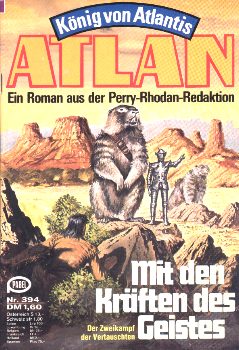 ![]() ![]() Grizzard und sein Begleiter Strezzo schlagen sich im Urwald am Regenfluß mit der Tierwelt herum. Schließlich geraten sie in ein Seitental des Ringgebirges, das die Senke umgibt. Im Tal leben riesige, degenerierte Raupenwesen, die jedes fremde Lebewesen als Beute betrachten, die sich jedoch gegenüber den modernen Waffen der Porquetor-Rüstung als wehrlos erweisen. Am Eingang des Tals befindet sich eine bullige Festung. Sie wird von hamsterartigen Intelligenzen bewohnt, die von den übrigen Bewohnern der Region als “die Mächtigen” bezeichnet werden. Grizzard kann die “Hamster”, die sich selbst Moosons nennen, für seinen Kampf gegen Kennon gewinnen. Die Hamsterwesen sind gefürchtete Telepathen, Telekineten und Hypnosuggestoren. Vier von ihnen Tullam, Bushmi, Uson und Metax werden zu Grizzards ständigen Begleitern. Dartuns Armee stellt sich als gegen Parakräfte nutzlos heraus. Schließlich gelingt es den Moosons Kennon zu stellen, sie versuchen ihn mit der Hilfe ihrer hypnosuggestiven Fähigkeiten aus dem Körper Grizzards zu vertreiben. Anfangs scheint dies zu gelingen, Sinclair Marout Kennon findet sich für kurze Zeit als Lebo Axton auf dem Arkon I des Jahres 8020 v. Chr. wieder, doch erweist sich der Bann der defekten Ischtar-Traummaschine als stärker. Bevor der wütende Grizzard den USO-Spezialisten töten kann, erscheint Atlan und bringt Sinclair Marout Kennon in die FESTUNG. Handlungszeit: Januar 2650 n. Chr. / Ende 8020 v. Chr. © Schrotys Materiequelle |
