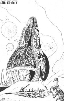 ![]() ![]() Organschiffe sind lebende Raumschiffe ähnlich den Dolans der Zweitkonditionierten, die waffentechnisch jeder bekannten feindlichen Flotte überlegen sind. Dies gilt sogar für die kleine GRIET, die nur über einen als Galionsfigur bezeichneten Exekutor verfügt, den Biten Ganzelpohn. Dieser kann sich während des Flugs in die Kleingalaxis aus der Konditionierung lösen, die ihn erst zum willigen Helfer des Dunklen Oheims macht. Der Sklave ist fest mit der GRIET verbunden und kann sich nicht aus seiner Funktion als Exekutor befreien, doch er rebelliert gegen die Besatzung unter dem Kommando von Eynar. Auch innerhalb der Hunods kommt es zu Kämpfen, die schließlich damit Enden, daß die weiterhin oheimtreuen Besatzungsmitglieder getötet werden. Als die GRIET das Weltenfragment erreicht, bitten Ganzelpohn und die Überlebenden bei Atlan um Asyl. Endlich erhält der Arkonide die Gelegenheit, über die Zustände in der Schwarzen Galaxis aus erster Hand informiert zu werden. Handlungszeit: Januar 2650 n. Chr. © Schrotys Materiequelle |