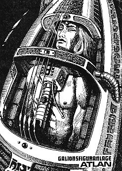 ![]() ![]() Anlytha ist vom Verhalten Algonkin-Yattas irritiert und es kommt zum Streit. Der körperlich überlegene Mathoner überwältigt die zierliche Frau und läßt sie in die Medoabteilung bringen. Er behauptet, daß Anlytha unter einer Krankheit leidet, die zu geistigen Fehlverhalten führt. Doch gelingt es der Gefährtin des Kundschafters die Psiotronik des Raumschiffs davon zu überzeugen, daß es Algonkin-Yatta ist, der sich seltsam benimmt. Eine Untersuchung führt schnell zu dem Ergebnis, daß der Molg den Mathoner geistig versklavt hat. Auf dem Planeten Därtzin-0 gelingt es den Medizinern im Dienst der Scuddamoren mühsam die Gesundheit Atlans zu stabilisieren. Nach dem Tod des Organschiffs DARIEN blieb der Arkonide als Galionsfigur mit den technischen Einrichtungen der Exekutorenkanzel des Raumschiffs verwachsen. Während das Organschiff verweste, drangen so Giftstoffe über das Lebenserhaltungssystem in den Körper des Unsterblichen, die auch der Zellaktivator nicht mehr neutralisieren konnte. Hinzu kommt, daß der Verlust des Extrasinns Folgen für die geistige Gesundheit Atlans hat. Er beginnt zunehmend unter Halluzinationen zu leiden, in denen er glaubt, der einfache arkonidische Soldat Gorot zu sein, der während des Methankriegs auf einer feindseligen Sumpfwelt strandete. Auf Weisung Chirmor Flogs wird der Arkonide vom Schicksal als Galionsfigur befreit und erfolgreich entgiftet. Den Halluzinationen Atlans können die Mediziner hingegen nicht beikommen. Die Psiotronik entwickelt ein an sich harmloses Gas, daß die hypnosuggestiven Einflüsse des Molg auf Algonkin-Yatta neutralisiert. Als die Gefährtin des Kundschafters das Zwitterwesen daraufhin töten willen, wird sie vom Mathoner aufgehalten. Während der Zeit seiner geistigen Versklavung hätte er nicht nur Befehle empfangen, sondern konnte auch die Gedanken des Mutanten lesen. So hat er erfahren, daß es sich bei den Molg um ein Mischwesen aus einer Lebensform vom Planeten Cändero-Spell und dem arkonidischen Zusatzbewußtsein Atlans handelt. Der Molg müsse unbedingt zu Atlan gebracht werden, damit dieser wieder mit seinem Extrasinn vereinigt werde, auch wenn das Zusatzbewußtsein davon nur mäßig begeistert ist. Mit dem auf dem Löcherkometen erbeuteten PSI-Spürer ermittelt Anlytha den Aufenthaltsort des Arkoniden. Dort ist es Atlan gelungen aus dem Hospital zu fliehen, während er im Wahn glaubte, die Scuddamoren währen Helfershelfer der verhaßten Maahks und würden ihn foltern, um an Geheimnisse der Arkonflotte zu gelangen. Als der Wahn sich vorübergehend verflüchtigt, findet sich der Arkonide inmitten eines ausgedehnten Mangrovenwaldes wieder. Im Hospital herrscht Panik, den ohne medizinische Behandlung hat der Arkonide nur mehr wenige Wochen zu leben, doch Chirmor Flog hat die baldige Auslieferung eines lebendigen Atlans nach Säggallo angeordnet. Als die RUORYC den Planeten Därtzin-0 erreicht, ist der Arkonide noch immer flüchtig, die Psiotronik errechnet aus den Angaben der Scuddamoren, daß Atlan ohne seinen Extrasinn nur mehr 23 Tage zu leben hat. Algonkin-Yatta bietet den Schergen Chirmor Flogs seine Hilfe an und rüstet gemeinsam mit dem Kommandanten der Scuddamoren Kirngän eine Suchexpedition aus. Während der Suche kommt es zu immer neuen Streitigkeiten zwischen den Söldnern und dem Kosmischen Kundschafter, allein der Befehl des Neffen, Atlan um jeden Preis lebendig nach Säggallo zu bringen, verhindert eine Eskalation des Konflikts. Schließlich wird der bereits vollständig dem Wahn verfallene Arkonide aufgespürt, überwältigt und in das Hospital zurückgebracht. Algonkin-Yatta bringt den Molg im betäubten Zustand in die Klinik, da dieser sonst die Gewalt über die Scuddamoren ergreifen könnte. Dort gelingt es das arkonidische Zusatzbewußtsein Atlans aus dem Mischwesen zu lösen und wieder zurück in die ihm angestammte Hirnregion des Arkoniden zu verpflanzen. Dennoch dauert es einige Tage, bis Atlan wieder transportfähig ist. Algonkin-Yatta hart so lange am Krankenbett des Arkoniden aus, bis dieser halbwegs zu klarem Bewußtsein gelangt. Es kommt zu den vom Mathoner lange herbeigesehnten Gespräch mit dem Kristallprinzen von Arkon, in dem Atlan zu erkennen gibt, den Kundschafter von Ruoryc zu kennen, obwohl es dazu bislang keine Gelegenheit gegeben haben kann. Außerdem erklärt der Arkonide, daß er nach Säggallo gehen wird, allerdings soll Algonkin-Yatta das Goldene Vlies alias den Anzug der Vernichtung mit sich nehmen. Nach dem Start von Därtzin-0 beschließt der Kosmische Kundschafter als erstes mit Hilfe der Notautomatik der Zeitkapsel zur Erde des Jahres 2650 n. Chr. zu reisen, um Perry Rhodan über die Entwicklung zu informieren. Danach will er nicht wieder in die Schwarze Galaxis zurück, sondern plant mit dem Kundschafterschiff ins Jahr 8020 v. Chr. und zu seiner Heimatwelt Ruoryc zurückzukehren. Handlungszeit: April 2650 n. Chr. Anmerkungen: © Schrotys Materiequelle |