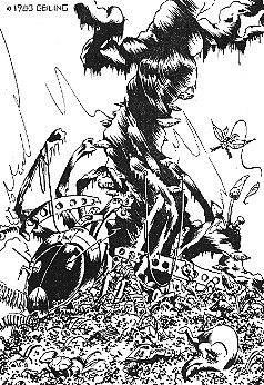 ![]() ![]() Als Dorkh nach endlos scheinender Reise das Ritiquian-System und damit den Sitz des Dunklen Oheims erreicht, bereitet sich die vom Seelenvampir ausgehende schwarze Plasmawolke noch einmal über Dorkh aus und verläßt den Dimensionsfahrstuhl anschließend. Gleichzeitig erklingt das grauenhafte Pfeifen des VONTHARA, diese Wachanlage ist Atlan bereits von Pthor bekannt, doch gelang es ihm nicht, sie zu aktivieren. Die letzten Überlebenden auf Dorkh fallen in Ohnmacht und sind damit vor weiteren Übergriffen des monströsen Geisteswesen geschützt. Atlan und seine beiden letzten noch lebenden Begleiter Fiothra und Razamon fallen ebenfalls in einen tiefen etwa fünf Stunden dauernden Schlaf. Als Atlan erwacht, ist Dorkh das Ziel einer Invasionsflotte des Dunklen Oheims. Fiothra wird noch im Halbschlaf von einem Tier angefallen und getötet. Razamon schützt hingegen sein Zeitklumpen. Auf die beiden Pthorer wartet ein ungewisses Schicksal als Gefangene der negativen Superintelligenz. Handlungszeit: Juli 2650 n. Chr. © Schrotys Materiequelle |
