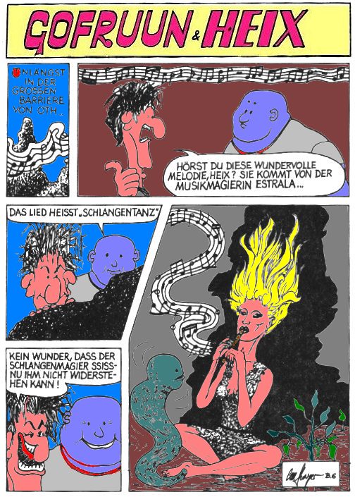 Gofruun & Heix Erschienen auf der LKS von Atlan Nr. 477. Fortsetzung der Cartoonreihe (Teil 1 bis 5 erschienen in Heft 460 bis 464) Colorierung der Internet-Ausgabe von Bernd Labusch