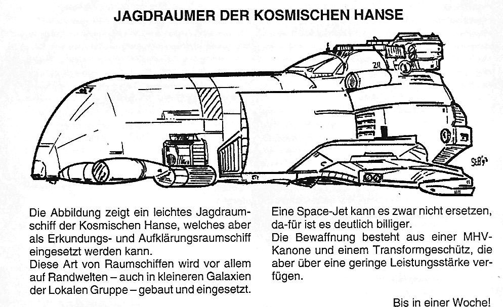 Ihr Ziel ist ein Maschtar - sie jagen auf der Residenzwelt Risszeichung: Georg Joergens & Christoph Anc - 20-Meter Space-Jet GRIBBON |