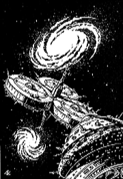 Als sie erwachen, erinnern sich Truhllamp, Kosham und Camerrham zurück an die vorherigen Ereignisse: Sie gehören zum Volk der amorphen Ceresprammarer, die durch Außenskelette gehalten werden, und sind im Tausensie-System beheimatet. Als eine kosmische Katastrophe ihr System bedroht, besteigen die drei Weibchen mit je dreitausend Eizellen ein Raumschiff und fliehen von Cerespramm. Die Technik ihres Volkes ist eher bescheiden und das Schiff kann nur mit Unterlicht fliegen. Es gerät in den Bereich eines Black Holes, aus dem es kein Entkommen gibt. Durch einen unbegreiflichen Effekt wird ihr Schiff durch das Universum geschleudert und materialisiert nahe einer Raumstation, die zwischen zwei Galaxien steht, die ihnen unbekannt sind. Der Effekt muss mit Überlichtgeschwindigkeit vonstatten gegangen sein, etwas, das die ceresprammarische Wissenschaft bislang als unmöglich darstellt. Das Schicksal mag die Ceresprammarer hart geschlagen haben, aber vielleicht sollte es auf der Station eine neue Zukunft geben.