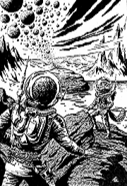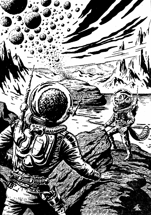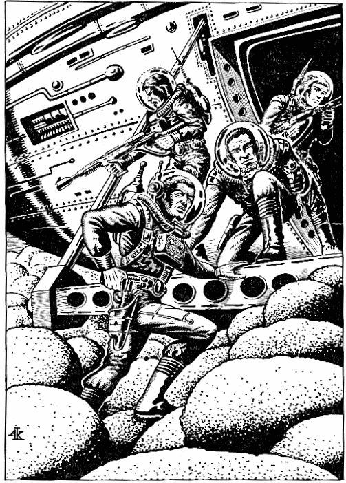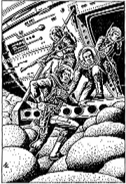 Carfesch, Alaska Saedelaere und Ras Tschubai untersuchen indessen den Ammoniaksee. Auffällig ist vor allem, dass die Schwämme, für die die Aufnahme von Flüssigkeit sehr wichtig ist, den See als Quelle meiden. Außerdem herrscht über der Oberfläche des Sees keinerlei Windtätigkeit und Sonden, die zur Erforschung auf dem See abgesetzt werden, zerstört dieser durch einen radikalen Temperaturabfall bis fast auf den absoluten Nullpunkt. Die Sprühgeräte werden alle 30 Stunden aktiviert. Als sie jedoch alle gleichzeitig ausfallen, beginnt ein unglaublicher Ansturm der EM-Schwämme. Rhodan erkennt, dass nur eine umgehende Flucht ihnen das Leben retten kann. So kommt es am 30. Mai zum übereilten Start der DAN PICOT. Der Kreuzer soll vorläufig nach Omikron-15 CV, zur dort parkenden Flotte, zurückkehren.