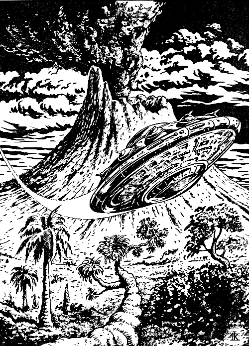 Der Kreuzer DAN PICOT tangiert auf seinem Flug nach Omikron-15 CV ein Drei-Planeten-System, und Marcello Pantalini schleust nach Absprache mit Perry Rhodan eine Space-Jet aus. An Bord befinden sich Mirko Hannema sowie die Brüder Jurgos und Tobias Niss. Ihr Ziel wird der zweite Planet der gelben Sonne EM-Beta, dessen Hauptmerkmal ein knapp 6000 Meter hoher Vulkan ist, dessen Grundriss und Krater exakt kreisrund sind.