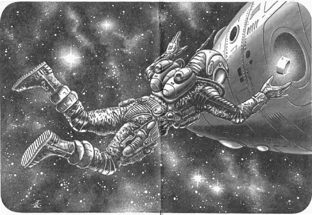 Unterdessen erfährt Rhodan von den weißen Raben, daß der Befleckte ein Verräter war und daß der Armadaschmied mit der Gewebeprobe im Synchrodrom einen Synchroniten erzeugen wird, eine seelenlose Kopie mit begrenztem Intellekt, mit deren Hilfe das Originalgeschöpf beeinflußt werden kann. Wenig später wird beobachtet, daß die weißen Raben den Befleckten in eine Sonne treiben. Im Augenblick seines Untergangs empfängt Fellmer Lloyd einen mentalen Impuls des Jubels. Da er durch den Synchroniten zu einer Marionette der Armadaschmiede zu werden droht, lehnen die weißen Raben es ab, Rhodan Armadaflammen zu verkaufen. Indem sie ihm aber die Koordinaten eines Planeten geben, auf dem sich die Armadaschmiede gegenwärtig Rohstoffe beschaffen, ermöglichen sie es dem Terraner, den Silbernen auf der Spur zu bleiben.