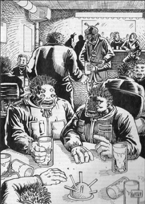 Während Lethos-Terakdschan sich unsichtbar macht, nehmen Atlan und Salik Kontakt mit den Abakern auf, die durch den Graueinfluß ihr früheres fröhliches und unbekümmertes Wesen verloren haben. Die Abaker stammen von kleinen Parasiten ab, deren Evolution zur Intelligenz von den Tiziden, den Gen-Technikern der Tiefe, vor langer Zeit beschleunigt wurde, um der von ihnen hervorgerufenen Schäden Herr zu werden. Mittlerweile handelt es sich um zwei Meter große, von gelbbraunem Flaumhaar bedeckte Wesen mit acht Gliedmaßen, von denen zwei der Fortbegung und vier als dreifingrige Greifwerkzeuge dienen. Das hintere, vierte Extremitätenpaar ist verkümmert. Die faltigen Gesichter und die herabhängenden Ohren der Abaker erinnern an Bulldoggen. Die Abaker führen Atlan und Salik, die mit ihren TIRUNs den Eindruck hervorrufen, Grauleben zu sein, zur Station von Meister Dovhan. Der spindeldürre, kreideweiße Tizide ist fast drei Meter groß und besitzt acht Extremitäten, von denen zwei am oberen, zwei am unteren Ende seines Körpers befinden, während die beiden übrigen Paare in der Körpermitte ober- und unterhalb der Stelle angebracht sind, an der sich reliefartig das Gesicht des Gen-Technikers mit seinem von beweglichen Wimpern umgebenen, faustgroßen Reptilienauge und dem spaltförmigen Sprechorgan erhebt. Wie bei den Tiziden üblich, ist der Körper Dovhans infolge genetischer Selbstversuche an mehreren Stellen verändert.