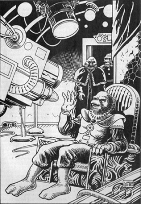 Um den Verstoß gegen das Erste Tiefengesetz zu ahnden, erscheinen die Exterminatoren, zweieinhalb bis drei Meter große, muskulöse Humanoide mit weißer, grüngesprenkelter Haut. Auf dem dreißig Zentimeter langen Hals sitzt, durch einen transparenten Helm geschützt, die faustgroße, schwarze, Sensuskugel aus Formenergie, mit der die Wesen sehen, hören und fünfzig Meter weit tasten können. Der weiße Schutzanzug der Exterminatoren, die sich mit einem Flugaggregat nach dem Gravo-Jet-Prinzip fortbewegen können, ist für Strahlschüsse undurchdringlich. Zu ihrer umfangreichen Bewaffnung gehört das Zepter, ein Stab von einem Meter Länge, der unterschiedliche Energiewaffen simulieren kann. Die Exterminatoren, die im Auftrag der Raum-Zeit-Ingenieure unter dem Kommando des Großen Exterminators als Tiefenpolizei die Einhaltung der Tiefengesetze sichern sollen, sind durch den Tiefeneinfluß zu gnadenlosen Todesschwadronen geworden, die die Verletzung des Dritten Tiefengesetzes durch die Grauen Lords ignorieren.