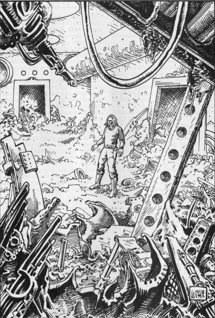 Bereits nach einer Woche zwingt ein Defekt die Gondel zweihundert Milliarden Kilometer vom Kyberland entfernt inmitten eines Schlachtfeldes zur Landung. Die sich bekämpfenden Ausen und Szesen sind vierbeinige, zweiarmige Wesen mit menschenähnlichen Gesichtern, über deren faustgroßen, tiefschwarzen Augen sich zwei breite Stränge grüner, warzenähnlicher Gebilde erstrecken. Unter der gelben Haut der behaarten Köpfe bewegen sich sternförmige Symbionten. Während Clio die Gondel repariert, beendet Atlan das sinnlose Töten, indem er, unterstützt durch die Exterminatoren, die beiden Magister, die ihre Soldaten in den Krieg treiben, aus ihren Palästen entführt und zwischen die Fronten bringt.