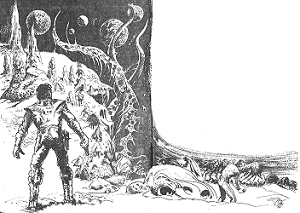 Gleichzeitig hat sich während der Plus-Phasen der Toten Zone das Hochplateau, auf dem die LEPSO gelandet war, in eine fremdartige Landschaft verwandelt, die eine Prozession von gedrungen wirkenden Wesen zeigt, die sich auf einen Tafelberg zubewegen. Diese Bilder sind allerdings sehr unscharf und können nicht von den Positroniken hochgerechnet werden. Als Tekener das Schiff verlässt, zeigt sich ihm ein gänzlich anderes Bild. Er hat das Gefühl, dass in dem Tafelberg eine fremdartige Macht ruht, die die Prozession zu sich ruft. Nachdem die Tote Zone erneut abgezogen ist, erscheint die Projektion nochmals, und es ist auch mit den Mitteln der Syntroniken nicht möglich, die unscharfen Bilder hochzurechnen. Danach startet die LEPSO wieder von Accaro III.