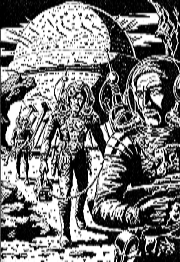 Voltago dringt in den Schacht ein und spürt, daß hier ebenso wie auf der Phänomen-Scheibe auf Trantar, in der nach seiner Aussage die Ewigkeit komprimiert sein soll, eine Ordnung herrscht, deren Prinzip er jedoch nicht erkennen kann. Voltago versucht, den in zweitausendsechzig Meter Tiefe gelegenen Durchlaß ins Nirgendwo zu untersuchen, und erkennt, daß das von den Samplern ausgehende hyperphysikalische Verbindungssnetz kompliziertere Verflechtungen aufweist, als Rhodan annimmt, der glaubt, all diese Planeten hätten ihren Fokus auf Mystery. Da der Klon betont, nur mit Mila Vandemars Hilfe die Wunder sehen zu können, deren Vorhandensein er gefühlt habe, erklärt sich die junge Mutantin, die Voltago nach ihrem Erlebnis auf Trantar gemieden hat, bereit, gemeinsam mit ihm den Schacht zu untersuchen. Während Nadja Vandemar in einer in eintausend Meter Tiefe eingerichteten Station zurückbleibt, dringen ihre Schwester und der Kyberklon tiefer in den Schacht ein. Obwohl Voltago Mila Vandemar nur für Minuten vor den mit ihrem Talent verbundenen Schrecken abschirmen kann, erlaubt es die durch einen Relaxationseffekt im Schacht hervorgerufene Zeitdehnung den beiden, das Labyrinth zu erforschen, das nur die junge Frau zu erkennen vermag. Die darin enthaltenen Gegenstände, darunter eine Skulptur, die ineinander verschlungene Fremdwesen darzustellen scheint, kann Mila zwar berühren, aber nicht bewegen, als existierten sie zwischen materieller und immaterieller Zustandsform. Einer starken Verlockung folgend, betreten Voltago und Mila durch einen Bogen die Fortsetzung des Labyrinthes. Sie führt in ein unendliches Land, in der Mila jedoch alles seltsam verdreht und seitenverkehrt wahrnimmt. Durch einen Tritt löst Voltago unabsichtlich ein mit negativer Strangeness behaftetes Pyramidenprisma. Es gleicht demjenigen, das während der Hyperraum-Parese auf Arkon II in Atlans Hand geriet, weist aber eine Masse von 20,111 Kilogramm auf. Eines seiner einundzwanzig Segmente fehlt.
