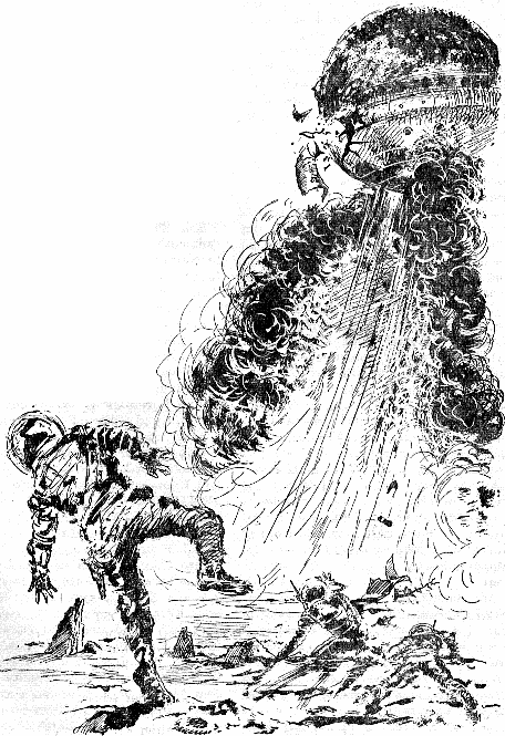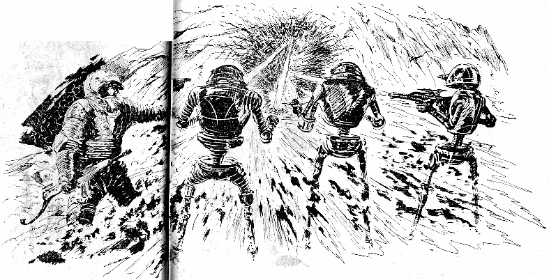 Bald darauf von greifen unbekannte Humanoide, die mit primitiven Raketen auf dem Planeten gelandet sind, die drei strahlenverseuchten Überlebenden mit Maschinengewehren und Atomgranaten an. Clark Yak, der letzte Mann der KOSTANA, kann gerade noch die EX-5207 informieren, ehe auch er getötet wird.