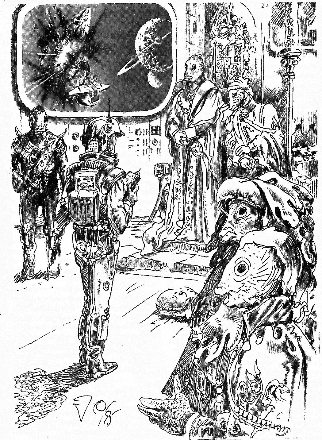 Trotz der besseren galaktischen Ausrüstung entdecken die Fermyyd unter ihrem Kommandanten Ten-Or-Too die Eindringlinge. Dennoch stoßen die zwei Gruppen bis zu den Gefangentrakts vor, in denen sich nach Aussage von Clarvens Simulation Atlan und Tekener befinden sollen. Doch sie werden nicht gefunden und in den Zellen liegen nur einsam zwei Würfel, die keinen psionischen Imprint aufweisen.