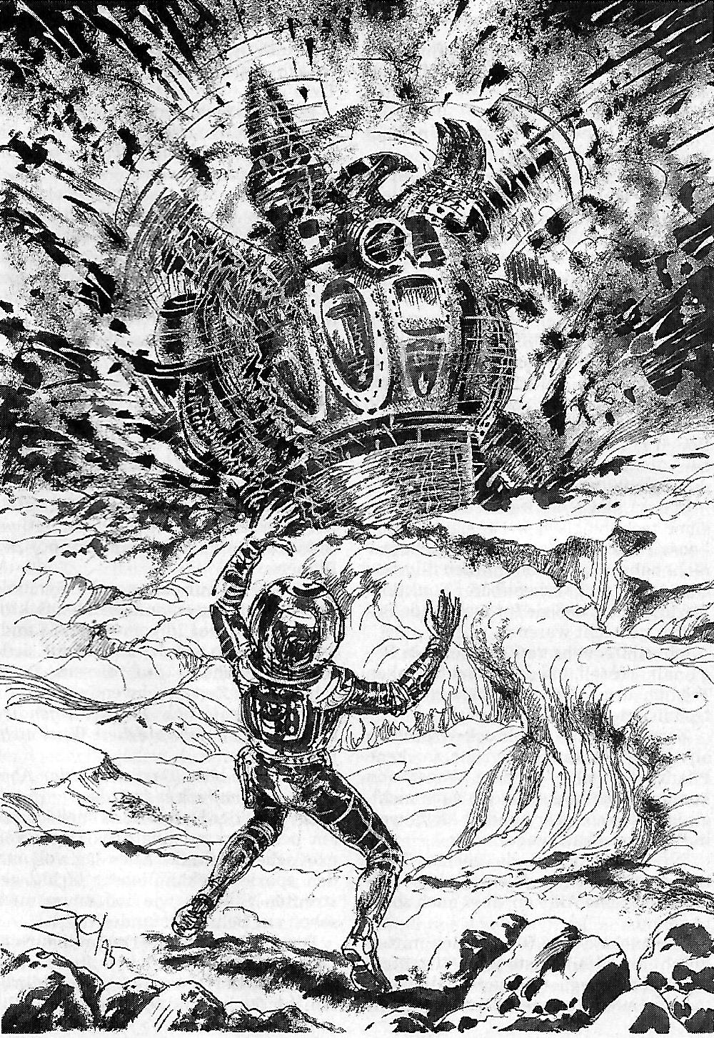 Nach seinem Erwachen am Fernkarussell untersucht Atlan die Oberfläche des Levels. Überall liegt High-Tech wie Müll herum und die oberste Schicht ist sozusagen die frischeste und akonischer Herkunft. Der Arkonide macht eine Rundreise zu allen 32 Regionalkarussells und sieht sich dort jeweils die nähere Umgebung an. Er entdeckt dabei auch automatische Bodenfräsmaschinen, die die Oberfläche bzw. den Müll durchpflügen.
