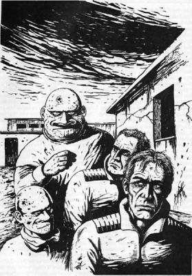 Die Stadt, vor der Perry Rhodan und Reginald Bull stehen, unterteilt sich in vier Unterstädte, eindeutig als Slums zu klassifizieren, und eine Oberstadt, die 40 Meter höher liegt und von einer Mauer umgeben ist. In den Slums regt es sich vor elendigem Leben und es sind Angehörige vieler Völker.