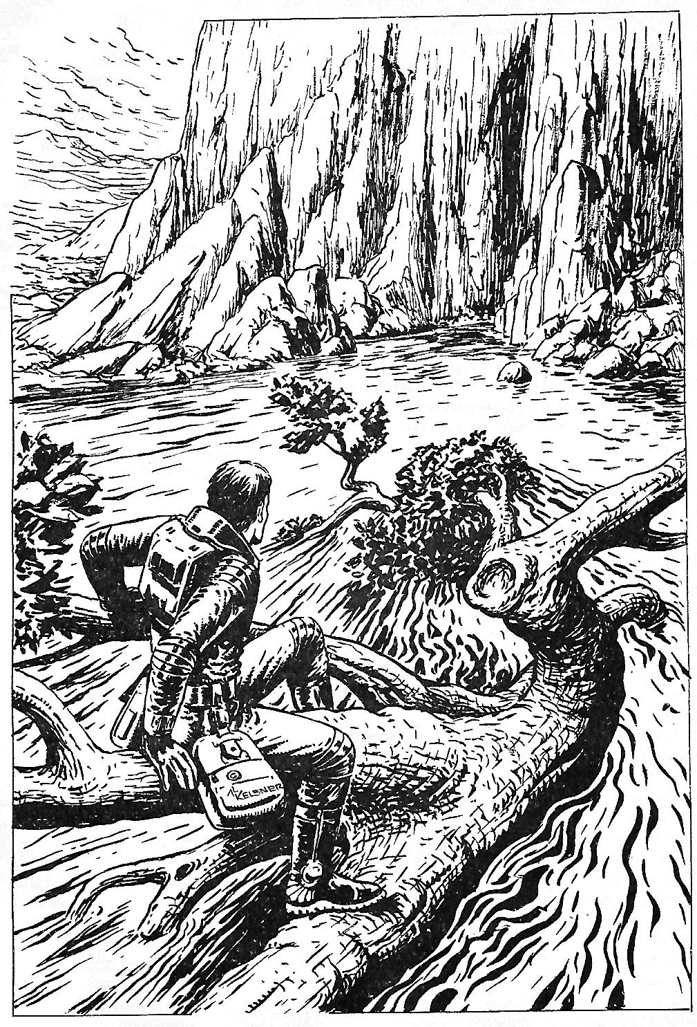 Währenddessen benutzt Lanagh das Flugaggregat seines Raumanzugs trotz Saedelaeres Verbot. Das Gerät explodiert auf dem Rücken des Raubyners, und er stürzt ab. Kurz darauf stirbt er an seinen Verletzungen. Wenig später findet der Zellaktivatorträger ein altertümliches Sportflugzeug mit Verbrennungsmotor vor. Da die Maschine nicht auf Energieflüsse angewiesen ist, funktioniert sie einwandfrei. Bei einem Erkundungsflug kann Saedelaere feststellen, dass der störende Einfluss auf energetische Geräte in einer Höhe von zirka 1000 Metern nicht mehr vorhanden ist. Allerdings endet in dieser Höhe auch die atembare Atmosphäre der Hohlwelt.