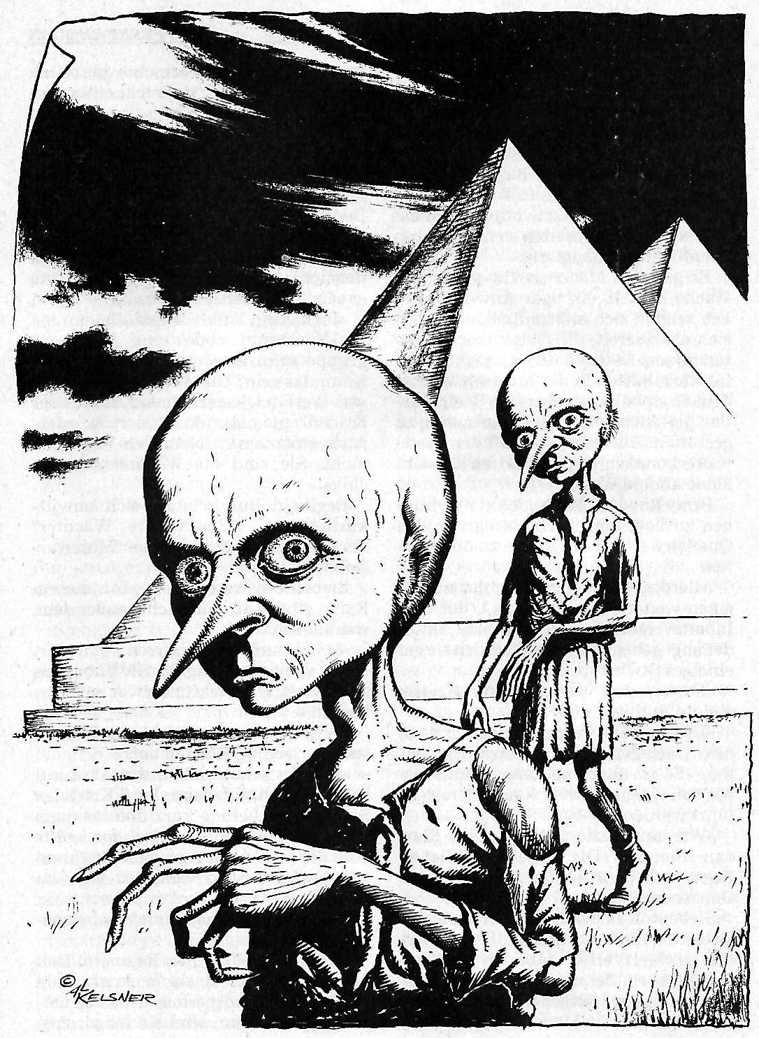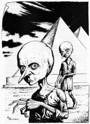 Auf dem unbekannten Planeten erheben sich drei Pyramiden, die 30 Meter hoch sind und eine Kantenlänge von 60 Metern besitzen. Darum sind ungefähr 400 einfache Hütten gruppiert. Daraus treten insgesamt 180 Zwerge hervor, die nicht größer als 80 Zentimeter sind und augenscheinlich am Ende ihrer Kräfte.