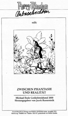 | Fanzines: | World of Cosmos 24 - Sandra Schaefer / Fanzine-Kurier 96 - Armin Möhle / Das Dunkle Archiv - Uwe Vöhl / Star Solution 2 - Markus Müller / Michael Ende Gedächtnisband - EDVC e.V. | |
