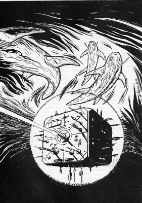 Als die Angriffe der »Seekühe« an Stärke zunehmen, entschließt sich Atlan zu einem gewagten Unternehmen. Er begibt sich in einem Raumanzug aus dem Schiff und schwimmt den Wesen entgegen. Sein Ziel ist die friedliche Kontaktaufnahme, was ihm mit Hilfe eines Translators schließlich gelingt. Atlan erfährt das die halbdurchsichtigen Wesen zum Volk der Evoesa gehören und sich als Wächtervolk des INSHARAM verstehen. Atlan kann das Missverständnis aufklären und die Evoesa von den friedlichen Absichten der SOL überzeugen. Ruyde Kerima Bassa, die Führerin und Älteste der Evoesa ertastet Atlans Zellaktivator und erkennt das die Wesen des Schiffes zu den »positiven« Kräften gehören. Bevor Atlan die Kommunikation mit den Evoesa vertiefen kann, erhält er einen dringenden Ruf sofort ins Schiff zurückzukehren....