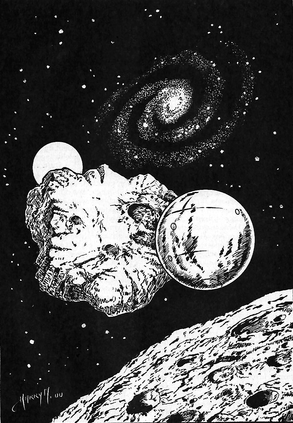 Als Atlan nach seiner ersten Kontaktaufnahme mit den Evoesa ins Schiff zurückkehrt, erwartet ihn eine Überaschung. Der Kokon von ES, der seit langem inaktiv in der Kommandozentrale schwebt, zeigt eine Veränderung! Erneut ist eine Art »Schublade« ausgefahren, die den Negativabdruck von Atlans Hand aufweist. Als der Arkonide die Fläche berührt erscheint ein wirbelndes Energiefeld, aus der eine kleine humanoide Gestalt materialisiert. Fast könnte man meinen, es wegen der Körperproportionen mit einem Siganesen zu tun zu haben, doch dieser erste Gedanke erweist sich als falsch. Die kleine Gestalt klärt diese Frage selbst und stellt sich zur großen Verblüffung der Besatzung als der Chronist von ES vor!