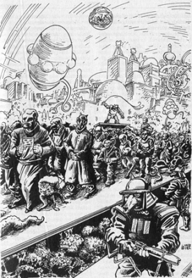 Die ferne Vergangenheit mit dem »Übergang« von der Thatrix-Zivilisation, dem Reich des Glücks und den mit ihm verbundenen Vaianischen Ingenieuren, zum ReichTradom muss vorläufig - weil unbekannt - ausgeklammert werden. Dies befriedigt ebenso wenig wie die Unkenntnis hinsichtlich der weiteren Machthaber, von denen bislang nicht mehr als die Umschreibung »Inquisitor« bekannt ist. Es ist nicht einmal klar, ob sie die eigentliche Spitze der Pyramide darstellen oder ob es eine noch höhere Instanz gibt-selbst wenn diese dann »nur« aus den Helioten bestehen sollte. Mit dem Brückenkopf ist also bestenfalls eine Ausgangsbasis geschaffen worden. Die eigentliche Erkundung hat eben erst begonnen. Inwieweit sie erfolgreich ist oder sein kann, steht auf einem anderen Blatt. Hauptvorteil der jetzigen Situation ist allerdings, dass das Sternenfenster - sollte es hart auf hart kommen -durch Sprengung der Stationen geschlossen werden kann. Fragt sich nur, ob damit mehr als nur Zeit gewonnen wäre ...