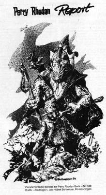 Die Geschöpfe, die sich im Verlauf der Jahrmillionen aus dem Biomaterial der Hand entwickelten, nannten sich zunächst Kherrah, später Herrach und schließlich Herreach. Entsprechend Kummerogs Programmierung weckte die Zeitmaschine in den Herreach den Drang, ihren »Gott Kummerog« aus seinem Tempel zu erlösen. Nachdem im relativen Zeitablauf Trokans rund zweihundertfünfzig Millionen Jahre vergangen waren, entdeckten Herreach Hinterlassenschaften der Ayindi und lösten unabsichtlich eine sechsdimensionale Schockwelle aus, wie sie Kummerog als in Indiz für eine ausreichend hohe Entwicklungsstufe vorgegeben hatte - das Zeitrafferfeld erlosch am 12. Oktober 1288 NGZ. Da es aufgrund des Zeitrafferfeldes während ihrer Entwicklung keinen Wechsel vonTag und Nacht, sondern einen ständigen Dämmerzustand gab, entwickelten sich die Herreach zu relativ ausgeglichenen, geradezu emotionslosen Wesen, die zurückgezogen lebten und keinen Ehrgeiz kannten. In ihrem Drang, Kummerog aus seinemTempel zu befreien, hatten sie die Fähigkeit erlangt, in gemeinsamer religiöser Gebetstrance Manifestationen zu erschaffen, beispielsweise den Zwerg Palomin, den vielgestaltigen Brodik,.die mehrachsige Gretra und den Riesen Schimbaa. Das Ende des Zeitrafferfeldes, insbesondere aber die Zerstörung des Kummerog-Mythos stürzte die Herreach zunächst in eine tiefe Sinn- und Existenzkrise. Das weitgehend religiös orientierte Volk stand der technischen Zivilisation der Terraner, die insbesondere von den Clerea abgelehnt wurde, ziemlich verständnislos gegenüber. Im Kontakt mit den Terranern entwickelte sich allerdings eine neue Gruppe, die Neuen Realisten, die den Mysterienkult ihrer Artgenossen ablehnten und sich am technischen Fortschritt orientierten. Das Volk der Herreach besteht aus etwa 145 Millionen Individuen. Sie alle leben verstreut über den etwas fruchtbareren Äquatorgürtel von Trokan, jedoch immer in der Nähe von sieben Ballungszentren, die den Städten Moond, Keerioch, Hovver, Galanter, Pröoon, Klob und Dubon zugeordnet sind. Moond ist die einzige Stadt mit mehr als einer Million Einwohnern; die übrigen Städte liegen bei je rund 500.000. Der Rest der Bevölkerung siedelt als Bauern in der Steppe.