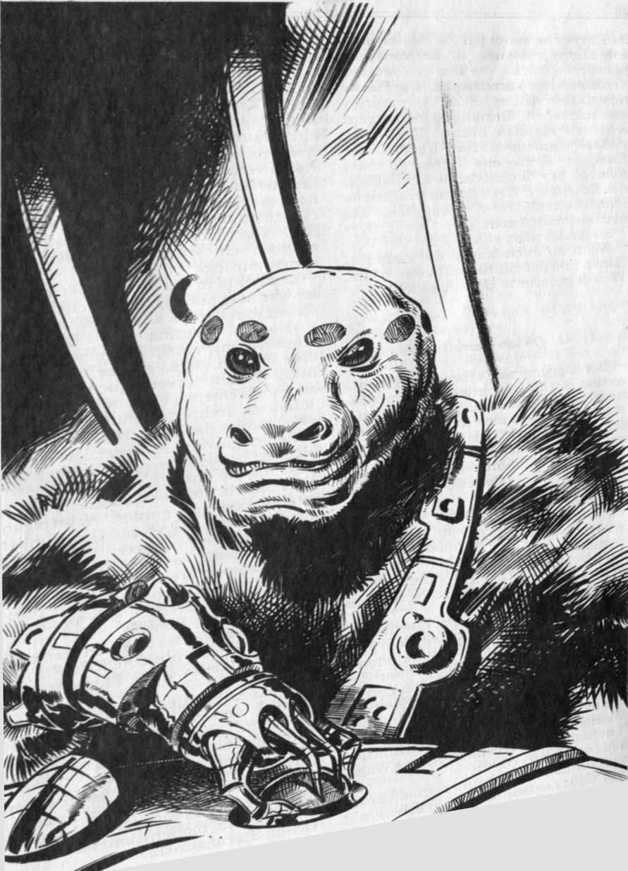 Aber lassen wir das und konzentrieren uns auf die reichlich gelieferten Fakten. Die Kybb-Traken, insbesondere Letoxx, werden recht gut als Cyborg-Igelwesen mit abstoßenden Gewohnheiten, fiesem Charakter, üblem Mundgeruch und einer total auf Technik ausgerichteten Denkweise vorgestellt. Sie halten die Kybb-Cranar für verachtenswertes Fußvolk, denn sie erfüllen weit wichtigere Aufgaben als diese. Sie verfügen auch über die mächtigeren Raumschiffe. Schwerste Einheit ist der Trakische Verheerer, ein Wabenraumer in Gestalt eines Sechseckprismas, bei dem jede Seite 61 Kilometer hoch ist und an dessen Bug sich ein zentraler, kreisrunder Innenhof mit 4 Kilometern Durchmesser befindet. Die Kybb-Traken sind vor allem für die Haltbarmachung des Schaumopals verantwor-lich - was der Verwendungszweck dieses an Paratau erinnernden Materials ist, wissen sie aber nicht. Außerdem betreiben sie die DISTANZSPUR. Dass man das Schloss Kherzesch nur auf diesem Weg erreichen kann, deutet darauf hin, dass es sich nicht im Normalraum befindet. Die Kybb-Traken verehren den Gott Gon/O (= Gon Orbhon), den sie als ihren „Maschinengott“ bezeichnen.