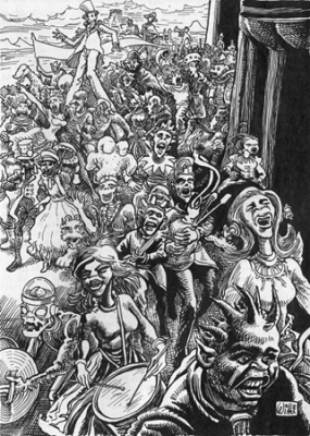 Lyressea, die in den letzten Romanen eigentlich nur noch schmückendes Beiwerk war, bekommt endlich mal eine richtig gute Rolle und auch sie wird sehr einfühlsam charakterisiert. Selbst eine Nebenperson wie der Dunkle Polizist Julcen, der nur in ganz wenigen kurzen Kapiteln auftritt, wird sehr effektvoll vorgestellt. Übrigens kann ich mir die bizarre Welt Kherzesch mit all ihren von einem geisteskranken Herrn ersonnenen Seltsamkeiten jetzt besser vorstellen als bisher. Interessant zu wissen, dass es so etwas wie eine Widerstandsbewegung im Untergrund gibt. Aber das ist ja auch kein Wunder, wenn man bedenkt, dass wohl niemand freiwillig auf Kherzesch lebt…