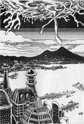 Während Perry sich immer noch den Widrigkeiten der Hyperphänomene ausgesetzt sieht und keine Möglichkeit hat, eine Warnung abzusetzen, offenbart sich Gon-Orbhon den Menschen und es tauchen die anderen Gigantraumer aus der Paukenwolke auf. Homer G. Adams versucht verzweifelt, Zeit zu gewinnen, damit Oberst Castro vielleicht die Chance hat, einen Angriff zu planen und damit Myles noch etwas Zeit bekommt. Scorchy hat er beauftragt, Mondra aus der Gefahrenzone am Vesuv zu holen, doch der kann sie nicht finden. Ebendort hält Imberlock eine weitere hetzende Rede vor der Menge.