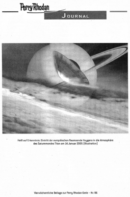 Gar nicht so dumm, die Idee, diesen Roman pünktlich zum Kinostart von „Star Wars Episode III“ mit einer Sonderbeilage zu eben diesem Thema auszustatten. Die 8 Sonderseiten, die in der Mitte des Bandes eingeheftet sind, ragen auch noch ein Stück oben aus dem Heft heraus, in schreiendem Gelb mit schwarzem Text wird dort behauptet, die Beilage enthalte „alles über Star Wars“. Das ist natürlich Quatsch, irgendetwas Neues erfährt man sowieso nicht, aber der von einem gewissen Carsten Scheibe stammende Text ist kein inhaltsloser Werbetext, sondern durchaus kenntnisreich geschrieben und nett zu lesen, wenn auch nicht fehlerfrei. Einige kleine Bilder aus allen 6 Filmen sind auch abgedruckt.-Nur - wird diese Sonderbeilage einen Nicht-PR-Leser zum Kauf des Hefts animieren? Oder gar dazu, den Roman zu lesen?