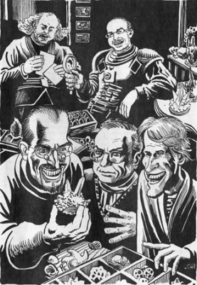 Der Roman spielt in Wien. Laut LL gibt es dort viele „Terra-Nostalgiker“. Die haben dafür gesorgt, dass die Donaumetropole im 14. Jahrhundert NGZ noch genauso aussieht wie im 21. Jahrhundert. Ja, ist klar. Warum auch nicht? In der Zwischenzeit ist die Erde ja nur einmal großmaßstäblich von den Dolans verheert, im Mahlstrom der Sterne komplett entvölkert und während der Monos-Diktatur völlig verwüstet worden. Da ist es natürlich auch überhaupt nicht unwahrscheinlich, dass die Wiener in LL-typischen Austriazismen parlieren und auch ihren „Schmäh“ nicht verlernt haben… Im Ernst: Auch hier gilt das, was ich Eingangs schrieb. LL konstruiert einfach eine völlig an den Haaren herbeigezogene Situation, um eine Kulisse zu haben, vor der er sich austoben kann. Zur Erinnerung: Wir sprechen hier von einer Epoche, die aus der Sicht der Terraner mindestens so lange zurückliegt wie das Alte Ägypten aus unserer Sicht… Der Leser soll das alles dann wohl einfach als gegeben hinnehmen. Ich finde es einfach nur ärgerlich.