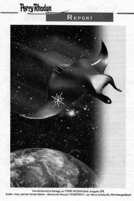 Reportgrafik: | Grafik: »Das Lied der fernen Sterne - Bionischer Kreuzer FEUERFROST « (Marco Scheloske, Mönchengladbach)Grafik: »Das Lied der fernen Sterne - Bionischer Kreuzer FEUERFROST « (Marco Scheloske, Mönchengladbach) | |