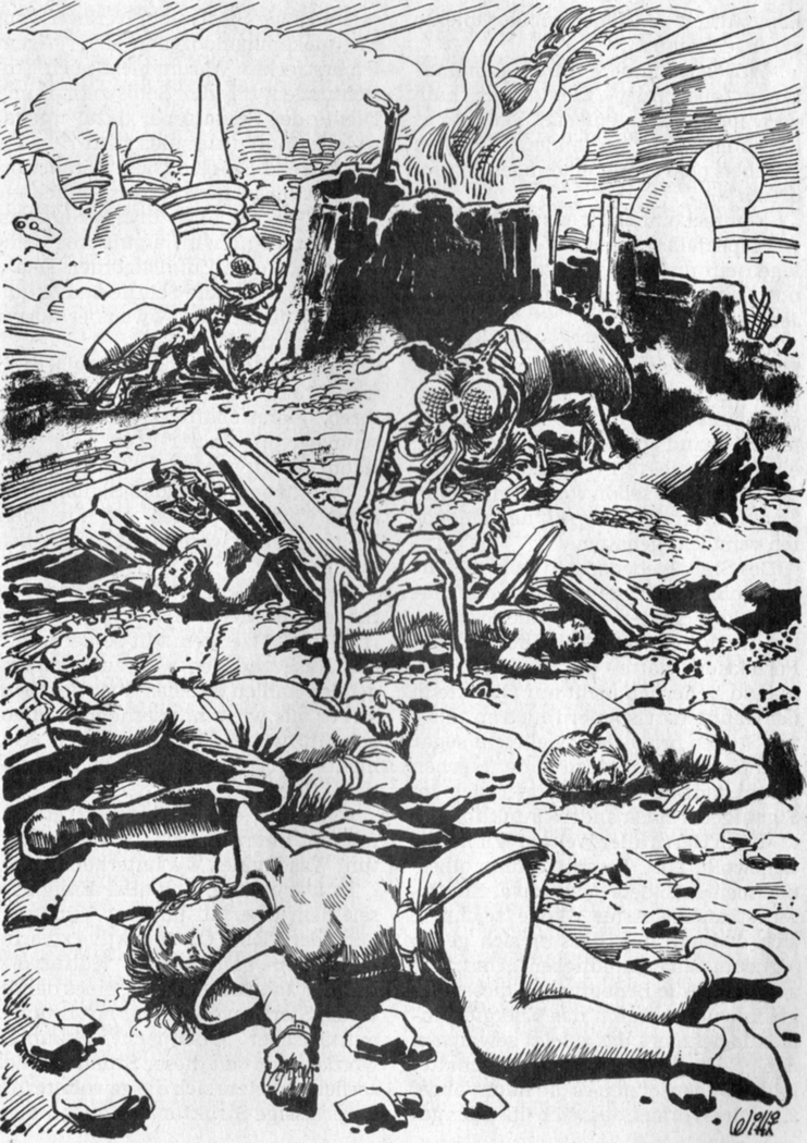 4. Führer des Feldzugs eines Kolonnen-Teils sind körperlose Wesenheiten, die stets Superintelligenz-Status innehaben. In Fall des Feldzugs um die entste hende Negasphäre von Hangay ist es jene negative Superintelligenz KOLTOROC, die schon für den Fall der sieben Wasserstoffatmer-Mächtigen sorgte. Ein Chaopressor wie KOLTOROC sieht und handelt bei Bedarf durch die Körper der Progress-Wahrer - also durch Antakur von Bitvelt und die anderen Progress-Wahrer des Hangay-Feldzugs.
