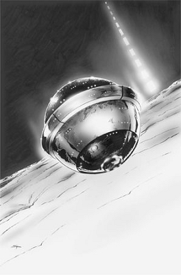 Reportriss: | Dieter Bohn : Terranische Alltagswelten: Kugelrutschen mit Zeichnung des Museumsraumers MERCATOR |