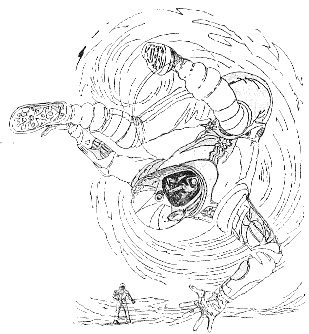 Am 10. August 2402 startet ein Konvoi von sechs Transportschiffen im Geleit des Schweren Kreuzers BAGALO vom Schrotschuß-System nach Andro-Beta. Alle Schiffe verfügen über ein dreistufiges Zusatztriebwerk, dessen einzelne Stufen eine Reichweite von zweihundertfünfzigtausend Lichtjahren haben. Am 16. August erreicht der Geleitzug sein Ziel. Bei einem Orientierungsflug dringt die von Oberstleutnant Kim Dosenthal kommandierte BAGALO in einen Moby ein, dessen Bewußtsein sich beim Angriff der Bioparasiten in drei getrennte Persönlichkeiten aufgespalten hat. Eine davon, genannt der Hungrige, weiß, wie die Nahrungsaufnahme- und Verdauungsorgane funktionieren, eine andere, der Außenposten, kann den Weltraum nach Nahrung absuchen, die dritte, der Wissende, beherrscht die gesamte nicht zweckgebundene Erinnerung des Mobys. Der Versuch der Terraner, sich aus der Gewalt der drei Brüder zu befreien, die sie aus unterschiedlichen Interessen heraus mit telekinetischen Mitteln festhalten, stört das energetische Gleichgewicht der Drillinge, was zu Eruptionen im Innern des Riesenwesens führt. Nachdem die BAGALO ihn verlassen hat, explodiert der Moby.