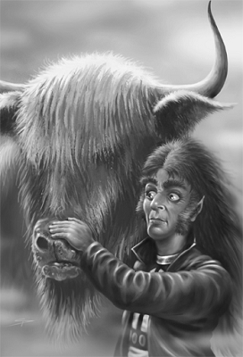 Eigentlich waren es zwei Köpfe, denn aus dem Haarschopf des Mannes, der gerade aufgetaucht war, ragte ein faustgroßer Klumpen mit einem leuchtenden gelben Auge darin [ ...Der Mann oder das Ding trat jetzt auf eine kleine Lichtung, sodass die drei Eindringlinge ihn in voller Größe sehen konnten. Auf dem Rücken des Mannes saß wie aufgepfropft ein unförmiges Wesen. »Symbiose«, murmelte Lloyd (…) »Sie haben uns entdeckt, wissen aber offenbar nicht, wo sie uns einordnen sollen«, stellte Atlan fest. »Mir ist jetzt klar, warum sie nie zur Erde zurückgekehrt sind. Sie sind nur noch zur Hälfte Menschen. Ich bin sicher, dass sie sich auch geistig verändert haben.« (...) »Wie ist es passiert? Wer sind die Wesen, mit denen sie eine Symbiose eingegangen sind ?« »Die Yjancs ...« (PR 666)