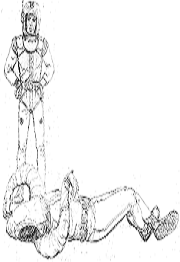 Wegen des großen Aufkommens an Raumfahrzeugen kann ein Enterkommando der Twonoser unbemerkt, an Bord gelangen und die Space-Jet 008C entführen. Der monströse Unklaich, in dessen Sprache Siren Yakkath heißt, vermittelt der aus Captain Whiley Liggett, Leutnant Robert Cecil Vorbeck, Sergeant Hoss Shriver und den Korporals Strombowski und Sol Rosenblatt bestehenden Besatzung der Space-Jet hypnotisch Haß auf Kasom und seine Männer und veranlaßt sie, zu dem gekaperten Schiff zurückzukehren, um es anzugreifen. Vorbeck befreit sich jedoch rechtzeitig aus der Hypnose und tötet Unklaich. Da die Twonoser die SJ-008C weiterhin unter Unklaichs Einfluß wähnen, gelingt es der Space-Jet nun, deren Flaggschiff anzugreifen und zu vernichten. Die Identität der Terraner somit bleibt geheim.