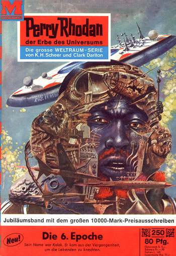Im Orbit um eine kleine rote Sonne im Randgebiet Andromedas wird eine Plattform entdeckt, die sechsundneunzig Kilometer durchmißt und zweiunddreißig Kilometer dick ist. Ein dreißig Kilometer breiter Gürtel aus Bauwerken aller Art umgibt eine freie Fläche. Nachdem Major Don Redhorse und die Captains Orsy Orson, Finch Eyseman, Conrad Nosinsky und Ische Moghu mit den fünf Korvetten der Ersten Flottille die völlig ausgestorben wirkende Station erkundet haben, landet die CREST auf dem fliegenden Raumhafen. Ein robotisches Empfangskommando heißt die Besucher auf der Werftplattform KA-preiswert des Kosmischen Ingenieurs Kalak willkommen und preist deren Reparaturleistungen an.