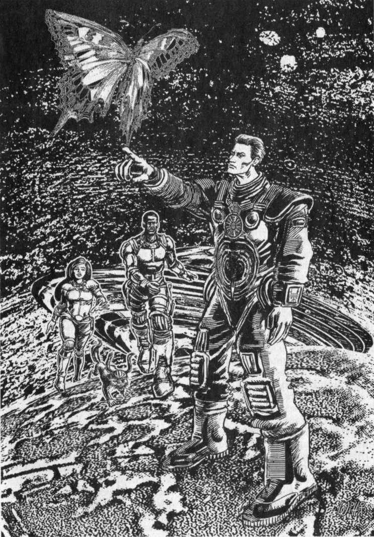 Elfahder Es ist schon eine Überraschung, dass beim neu entdeckten Polyport-Hof KREUZRAD Wesen gegen die Truppen der Frequenz-Monarchie kämpfen, die alles andere als unbekannt sind. Es ist zwar eine ganze Weile her, dass Rhodan & Co. mit ihnen zu tun hatten, dennoch kann es keinen Zweifel darüber geben, dass es sich bei den nach Far Away versetzten Mitgliedern des Suchkommandos um Nachkommen von Elfahder handelt. Im Frühjahr 429 NGZ trafen Vironauten erstmals in der Galaxis Erendyra auf sie. Damals gehörten diese Wesen zu den treuesten und eifrigsten Helfern der Ewigen Krieger in der Mächtigkeitsballung der Superintelligenz ESTARTU. Ihre formlos weißen Körper waren auf Exoskelette angewiesen, die an Ritterrüstungen erinnerten, »Igelpanzer« genannt, weil die Rückenpartie mit vielen handlangen Stacheln versehen war. Vagen Überlieferungen zufolge dauerte das »goldene Zeitalter der Elfahder«, die damals noch schlanke und eindrucksvolle Humanoide waren, von etwa 246.000 vor Christus bis rund 46.000 vor Christus und endete mit der »Großen Katastrophe«. Zu dieser Zeit gab es zwar 200 Siedlungswelten, doch der weiße Zwergstern Maard Uyo (Auge des Teufels) aus der sich Absantha-Shad nähernden Galaxis Absantha-Gom bedrohte das Aach-System mit Elfahd und seinen sieben Schwesterwelten.